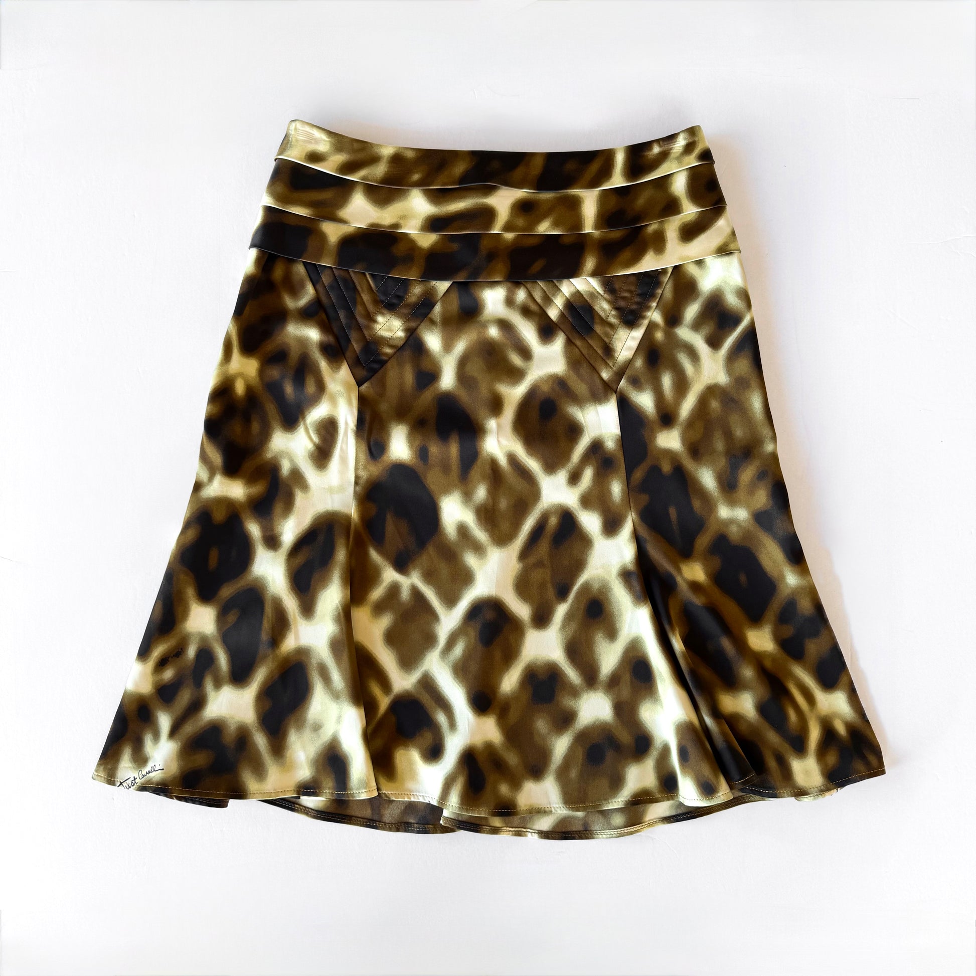 Early 2000’s Just Cavalli a-line midi skirt in a leopard print satin fabric.