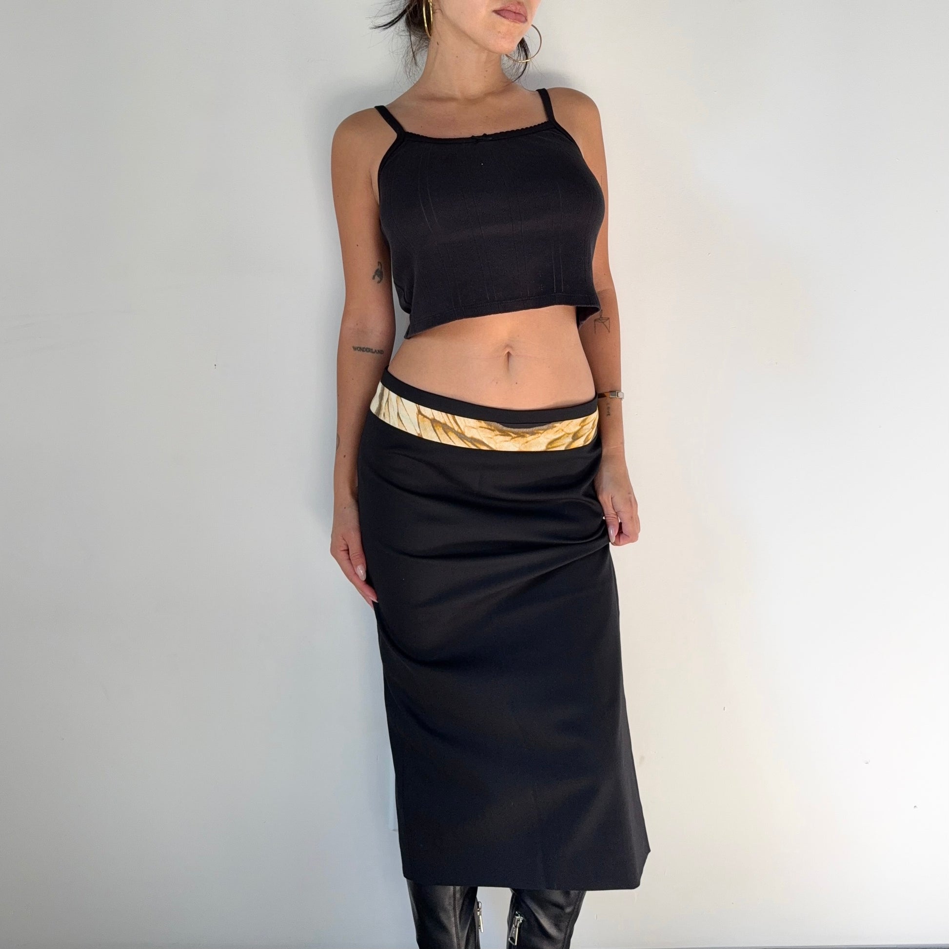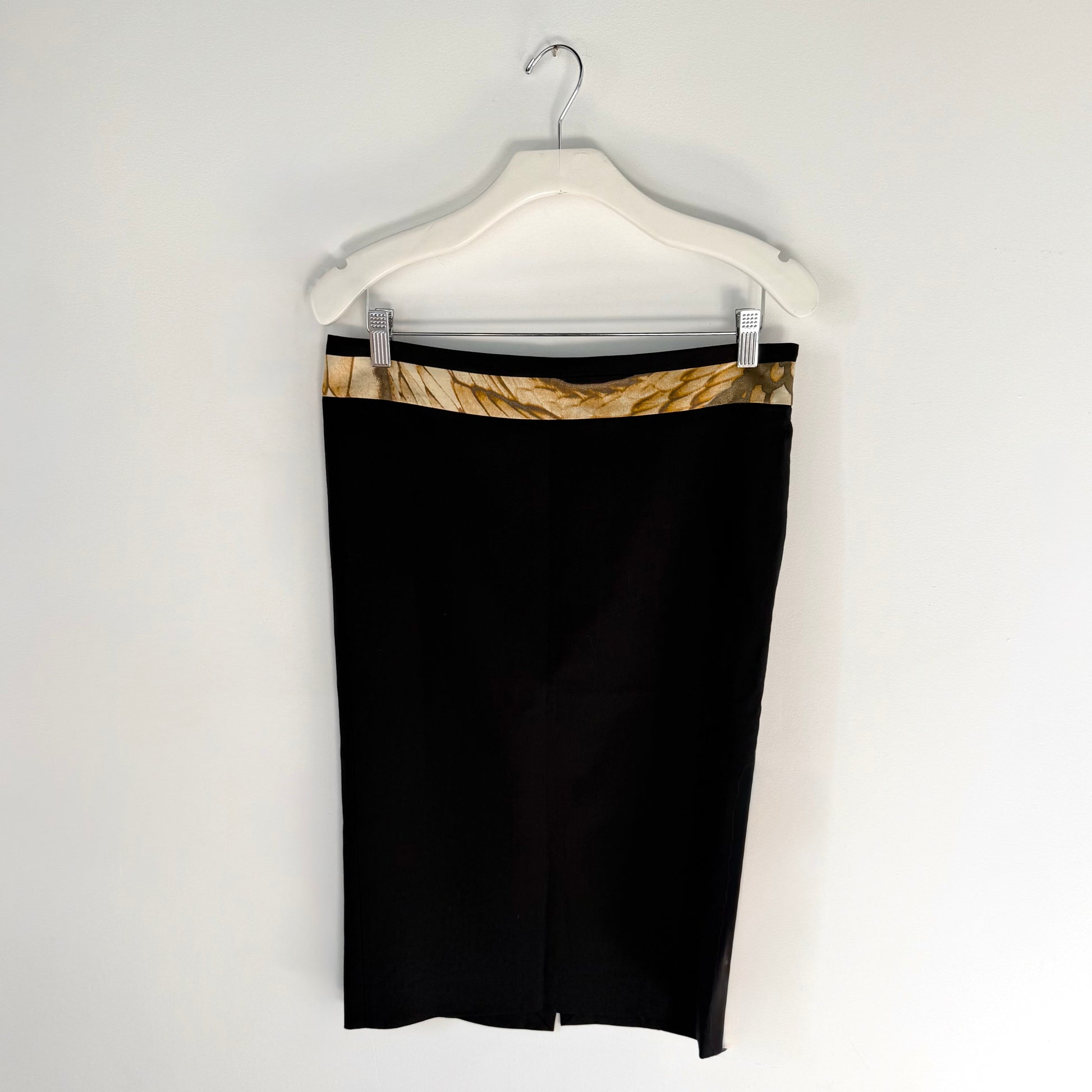 Vintage Cavalli black midi pencil skirt with animal print trim.