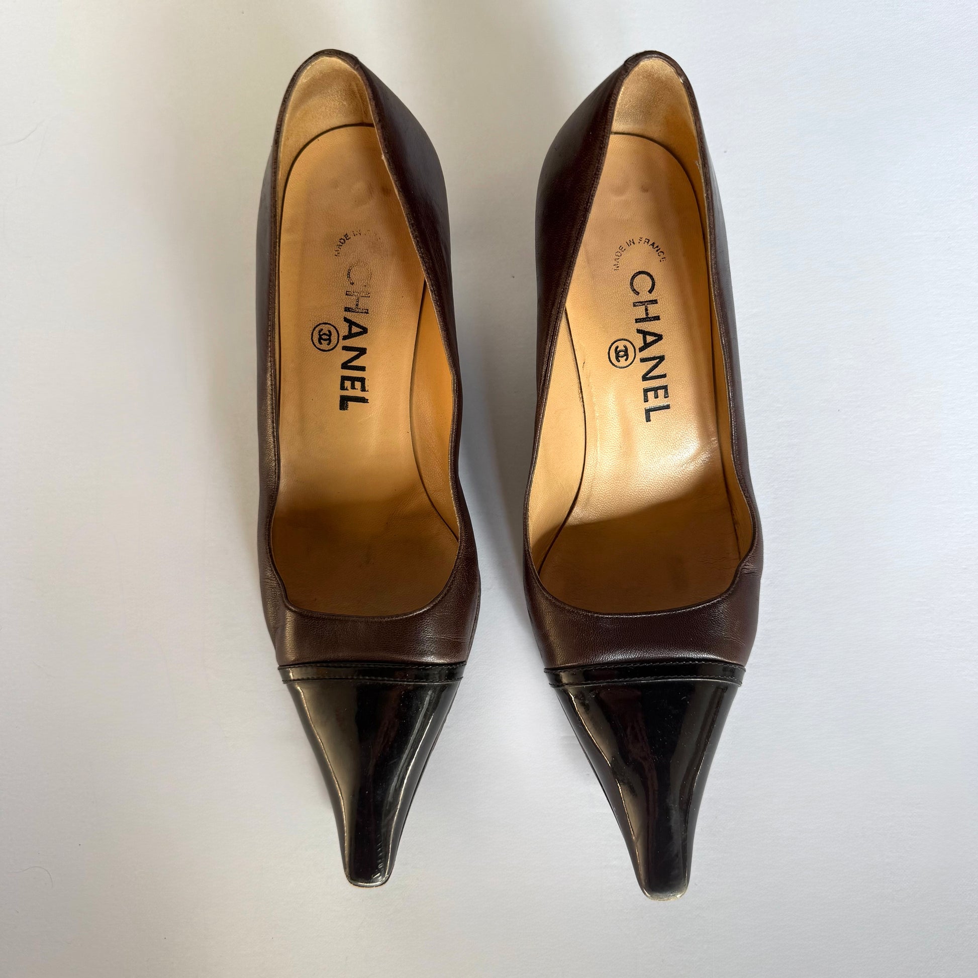 Classic Chanel colorblock heels with brown leather and black toe size 37