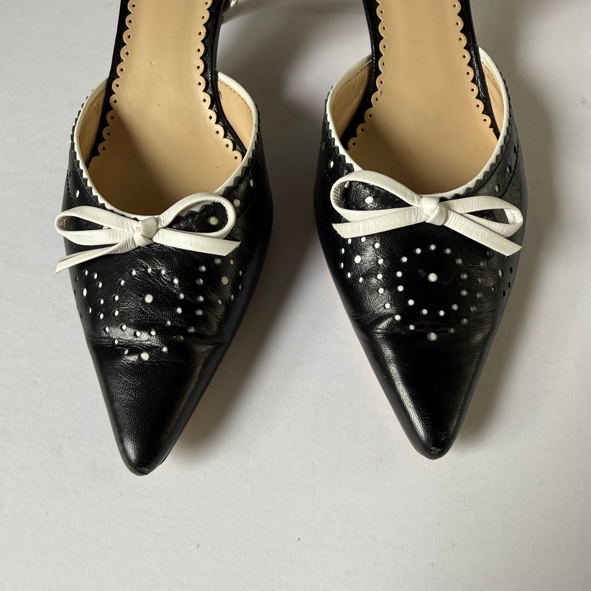 Vintage Oscar De La Renta Pointed Toe Kitten Heels with Bow Detail absolutely perfect coquette heels with cutest bow and scalloped detail.